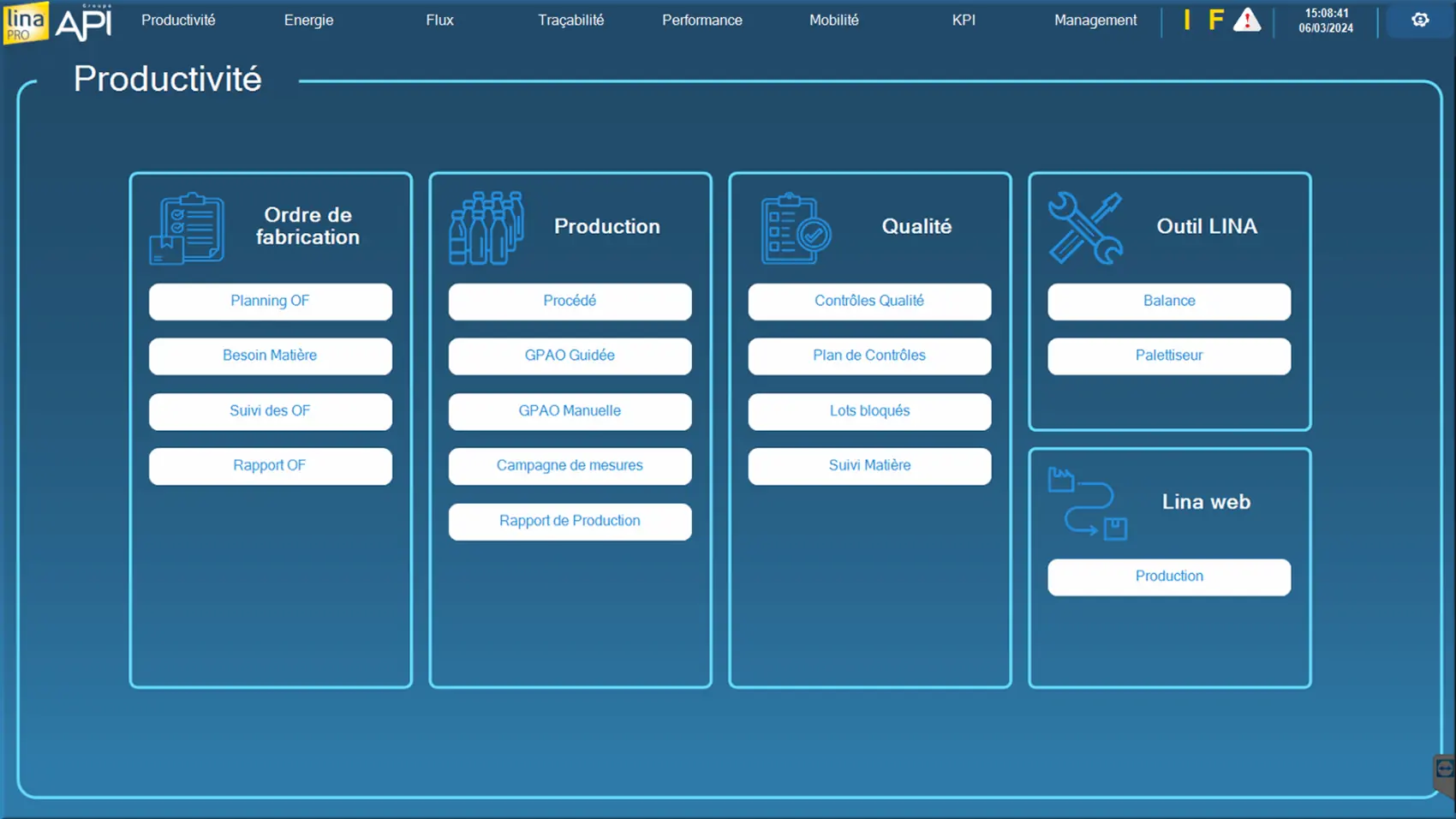 Menu Productivité