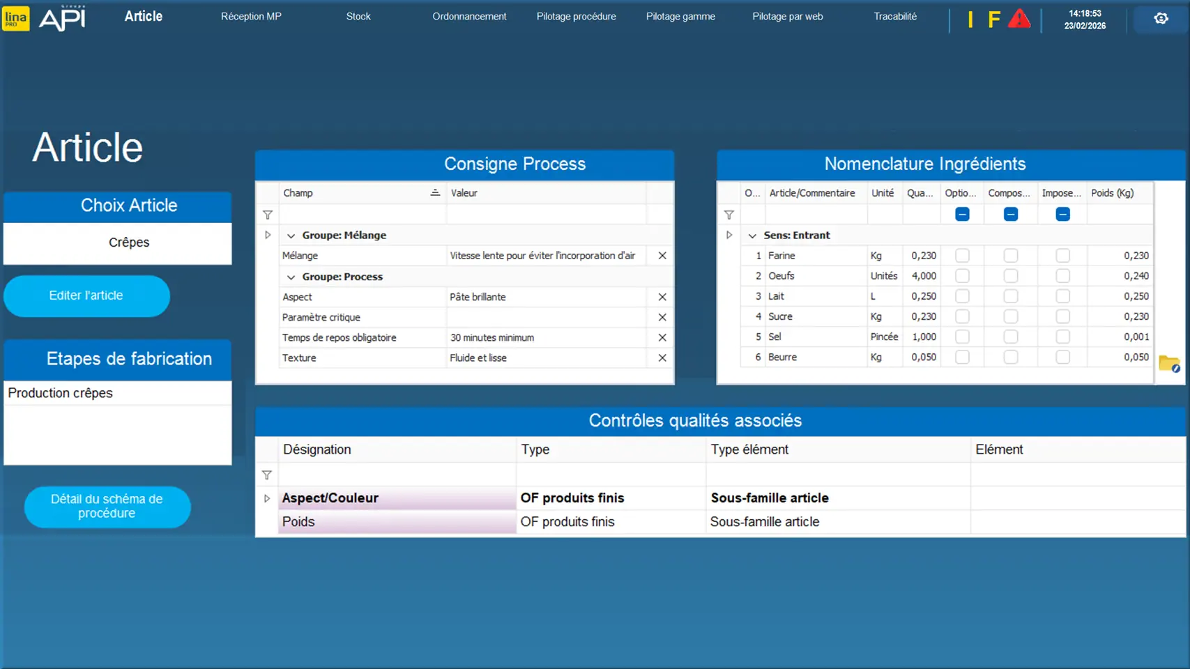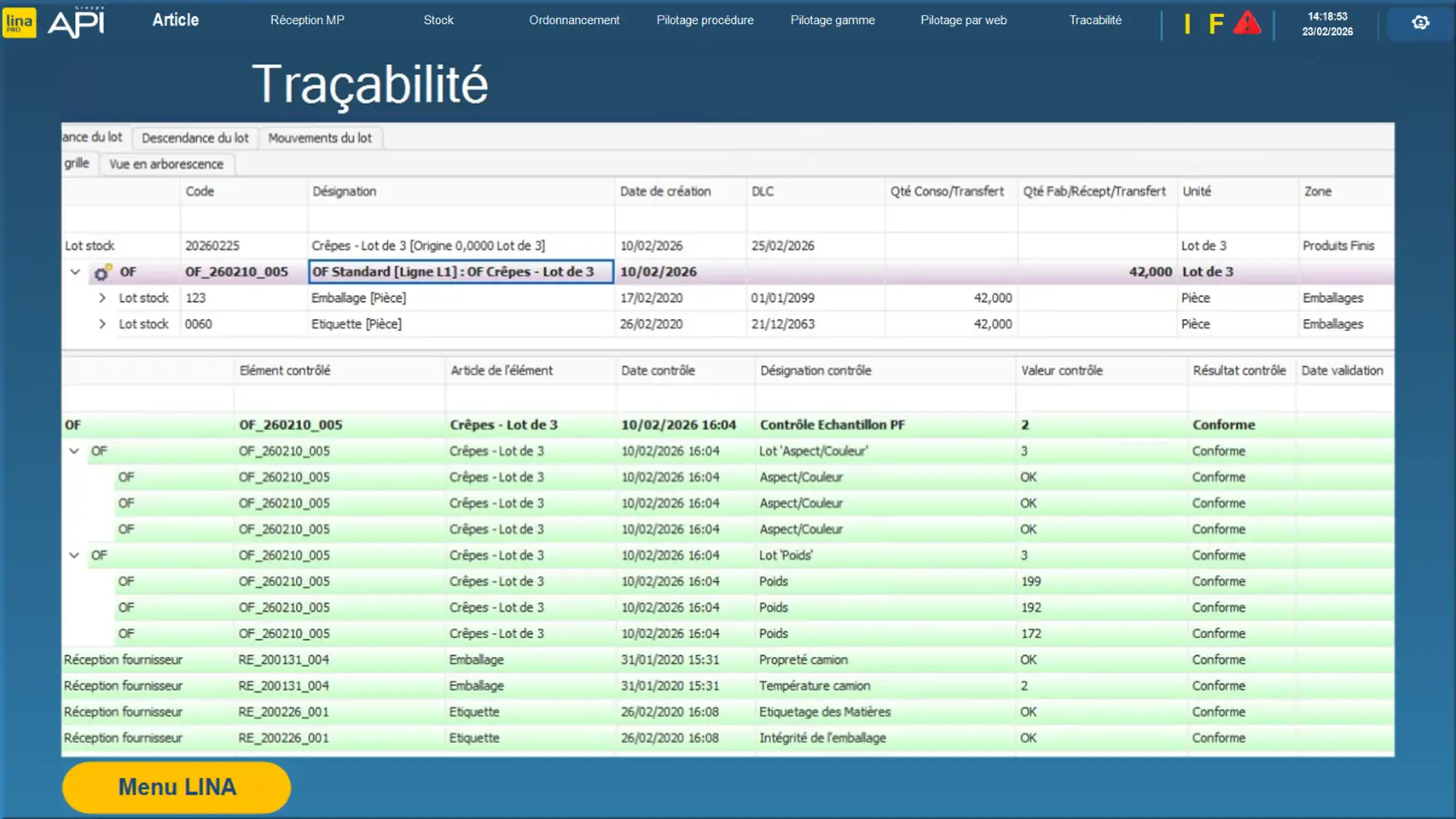 Basic : Traçabilité OF